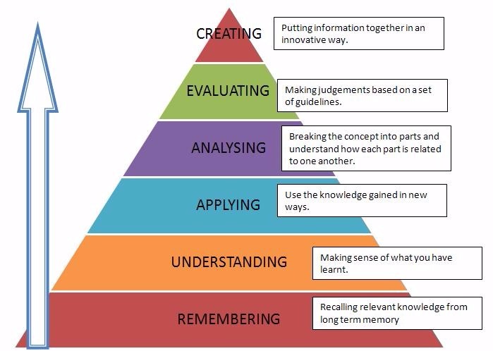 The Cognitive Domain of Bloom’s taxonomy consists of six hierarchical levels of learning. While educators, strive for students to reach the highest levels of learning at the top of the pyramid, all levels of learning depend on a solid foundation of those that come below.